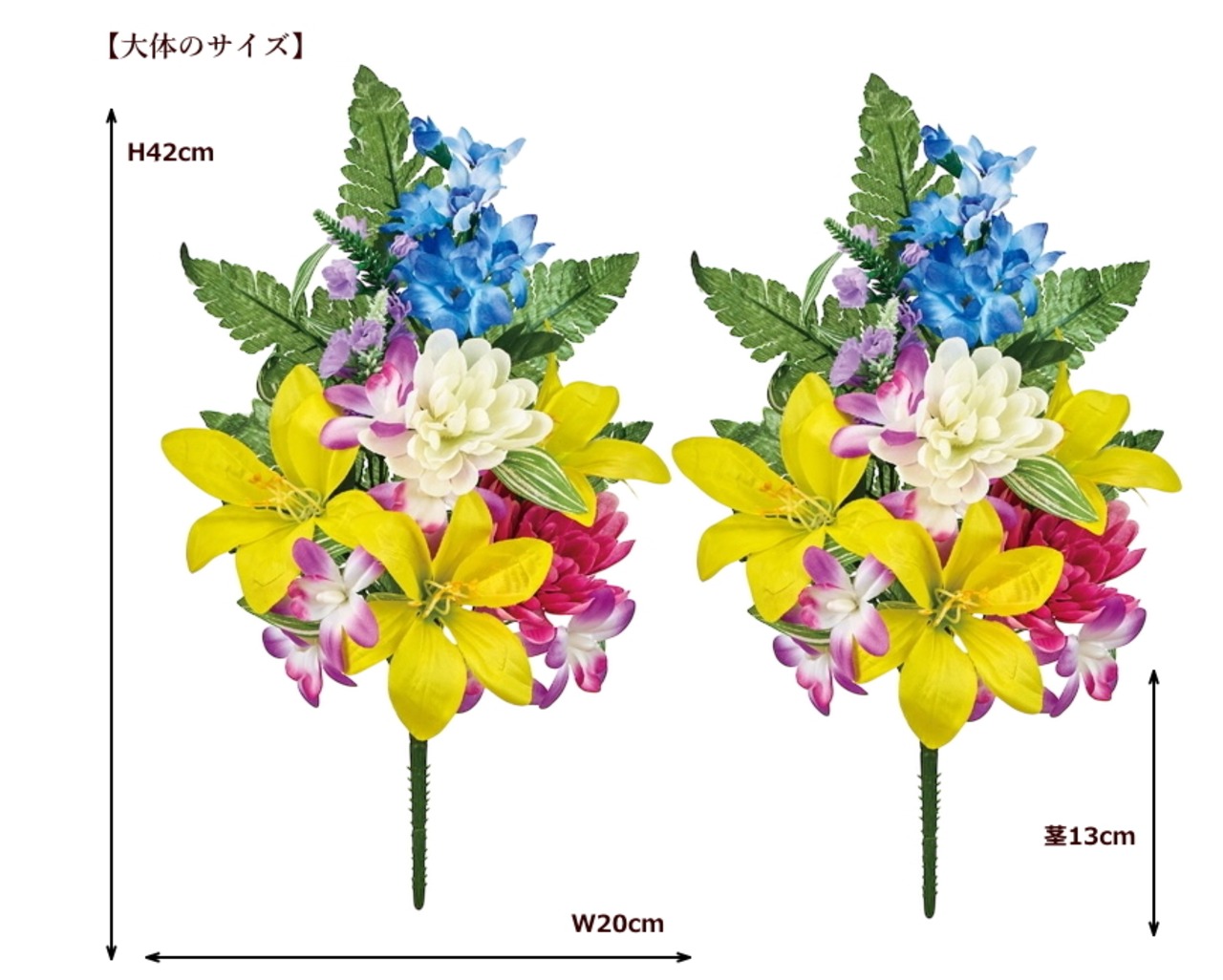 暑くて生花がもたない季節や、遠方に住んでいてなかなかお墓参りに行けない方や、生花を飾れない方に。造花(アートフラワー)はワイヤーが入っているので花の向きを自由に変えられます。小さな口径の花立てでも花を大きく広げることができ、美しいフォルムに仕上げることができます。伝統的と現代的な花の組み合わせで美しさを表現しています。
