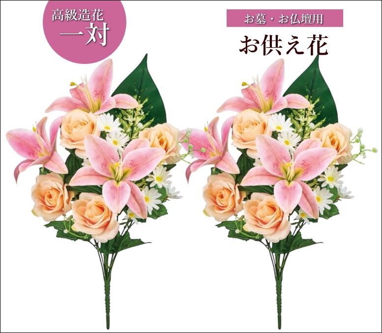 暑くて生花がもたない季節や、遠方に住んでいてなかなかお墓参りに行けない方や、生花を飾れない方に。造花(アートフラワー)はワイヤーが入っているので花の向きを自由に変えられます。小さな口径の花立てでも花を大きく広げることができ、美しいフォルムに仕上げることができます。伝統的と現代的な花の組み合わせで美しさを表現しています。