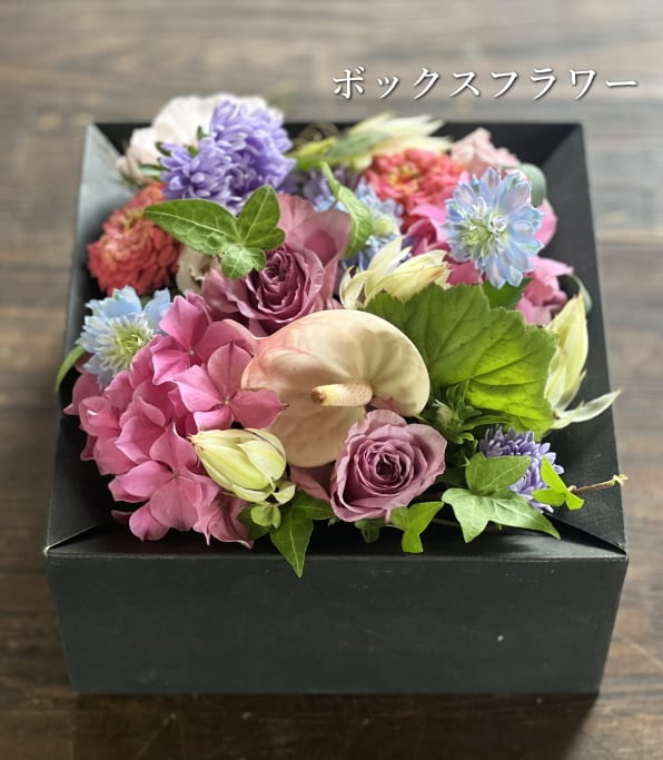 心温まる贈り物にぴったりのボックスフラワーアレンジです。お花をスタッフにお任せいただく1点ものです。誕生日を祝う特別な瞬間や、感謝の気持ちを伝える瞬間に最適な一品です。色とりどりの生花が詰め込まれたボックスは、まるで小さな庭のような美しさを醸し出し、贈った方も贈られた方も心を和ませます。季節の花やその日入荷した花だけでなく、当店の庭で採った植物も入れ作ることでまるで物語のよう。メインカラーをお選びいただけるため、お好きな雰囲気を演出できます。お好きな色をお選びください。季節の花を使用しているため、一期一会を楽しむことができます。デザイナーが1点ずつ丁寧にお作りしますので1日にできる個数は限られます。