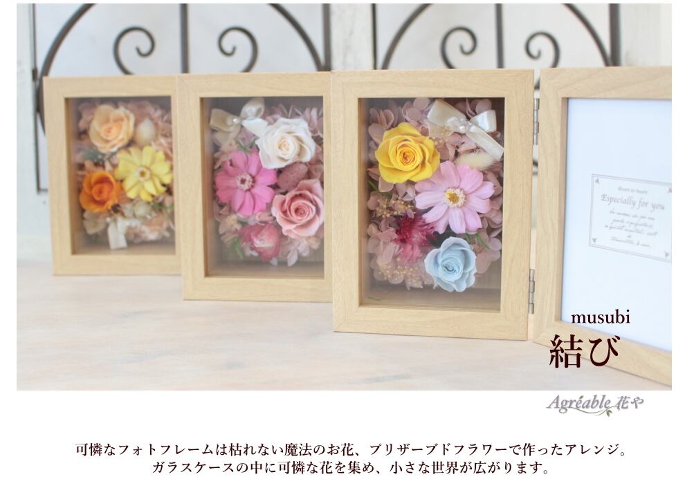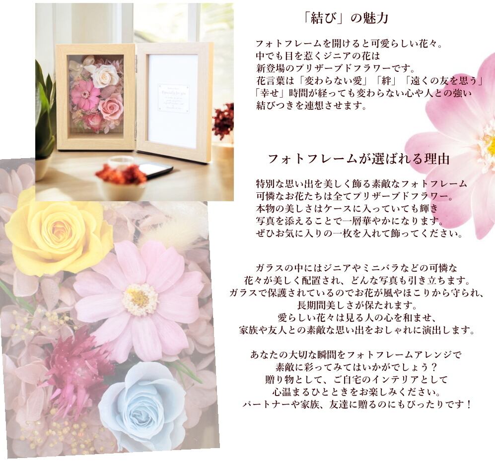 4/25迄早割10%OFF【2026母の日】プリザーブドフラワー 「結び 〜むすび〜」フォトフレーム プレゼント 誕生日 お祝い お供え