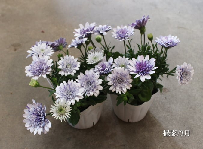 マーガレットに似た花を咲かせ、花つきが非常に良いです。こんもりした株にたくさんの花を咲かせる優秀な品種です。自分で育てて咲かせると花数の多さ花色がとても美しいです。開花期には肥料を切らさないように注意し、緩効性肥料や液肥を与えます。
