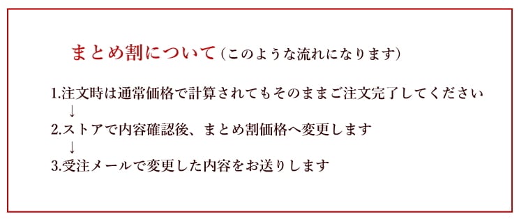 まとめ買いは下記の値段になります、ご注文確定後ストアで金額変更します。