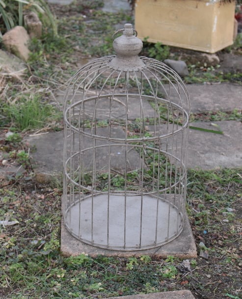 アンティークのアイアンワイヤーでできた落ち着いた雰囲気のバードケージです。