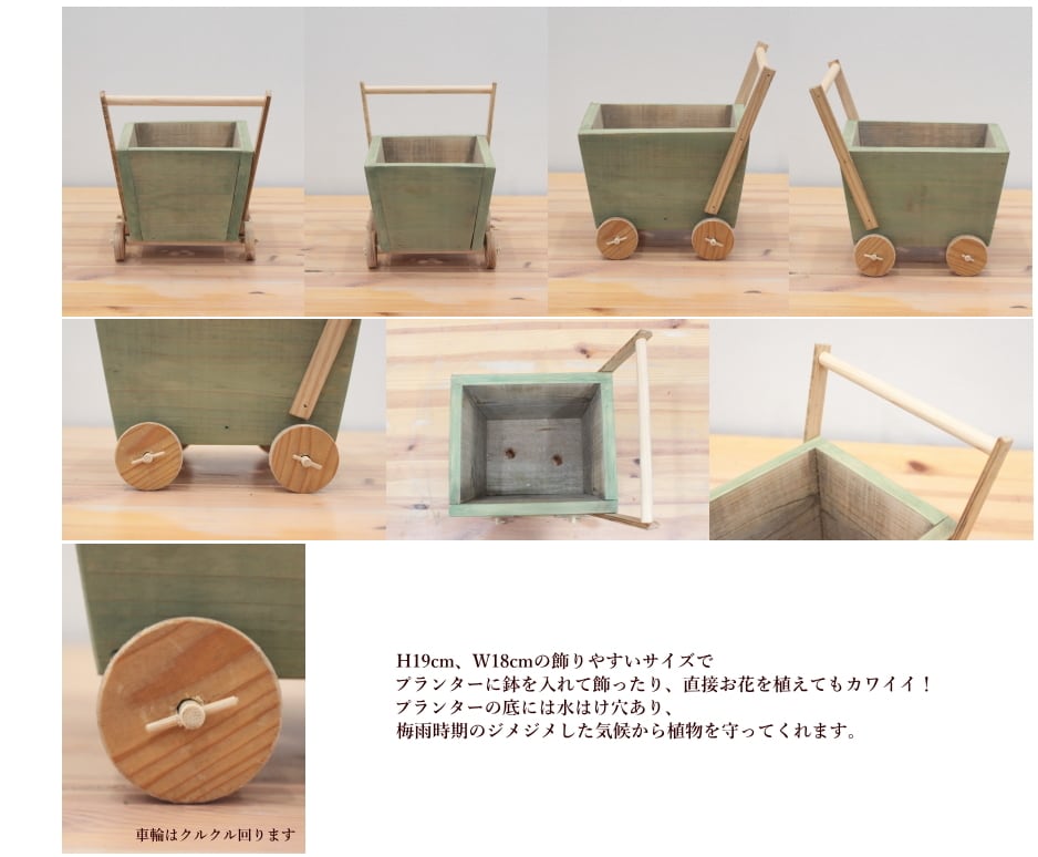 H19cm、W18cmの飾りやすいサイズでプランターに鉢を入れて飾ったり、直接お花を植えてもカワイイ!プランターの底には水はけ穴あり、梅雨時期のジメジメした気候から植物を守ってくれます。