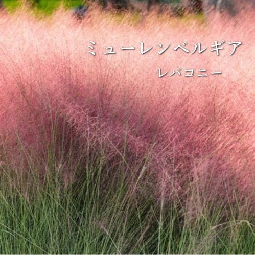ミューレンベルギアカピラリスに似たコンパクト品種です、2017年頃から流通が始まったグラスです。草丈が低く、きめ細かい葉が特徴で育てやすい、初秋にはピンクの花が一面に咲きます。レバコニーはコンパクト品種ですが、花つき、耐寒性はレバコニーの方が良いといわれています。穂の美しさ、葉も観賞価値があります。グラス好きにはたまらない植物です。
